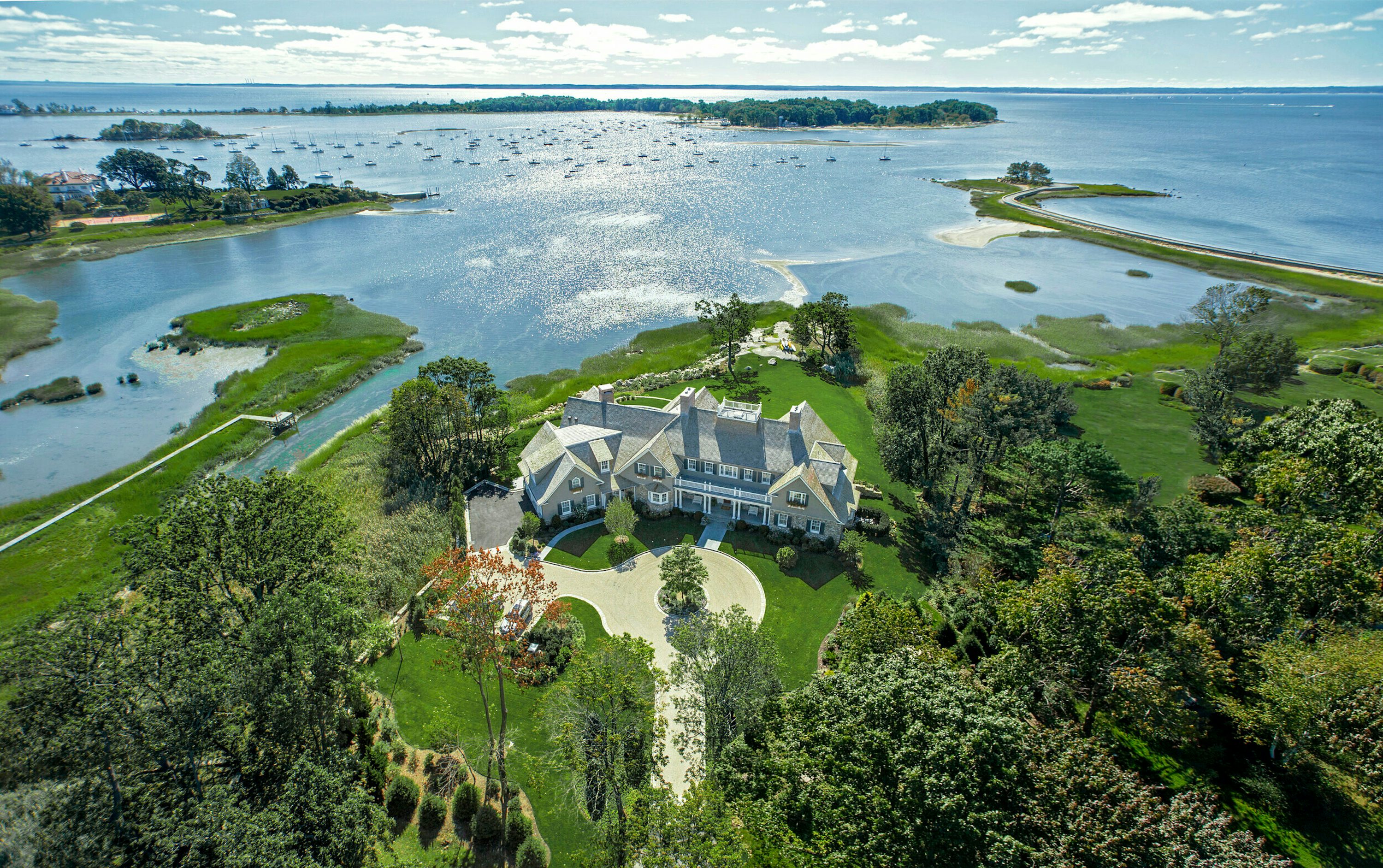Set on a scenic cove overlooking the Long Island Sound, this classic home is a masterpiece of shingle-style architecture. Designed by Charles Hilton Architects, the award-winning residence seamlessly blends traditional old New England charm with durable materials and a functional feel.