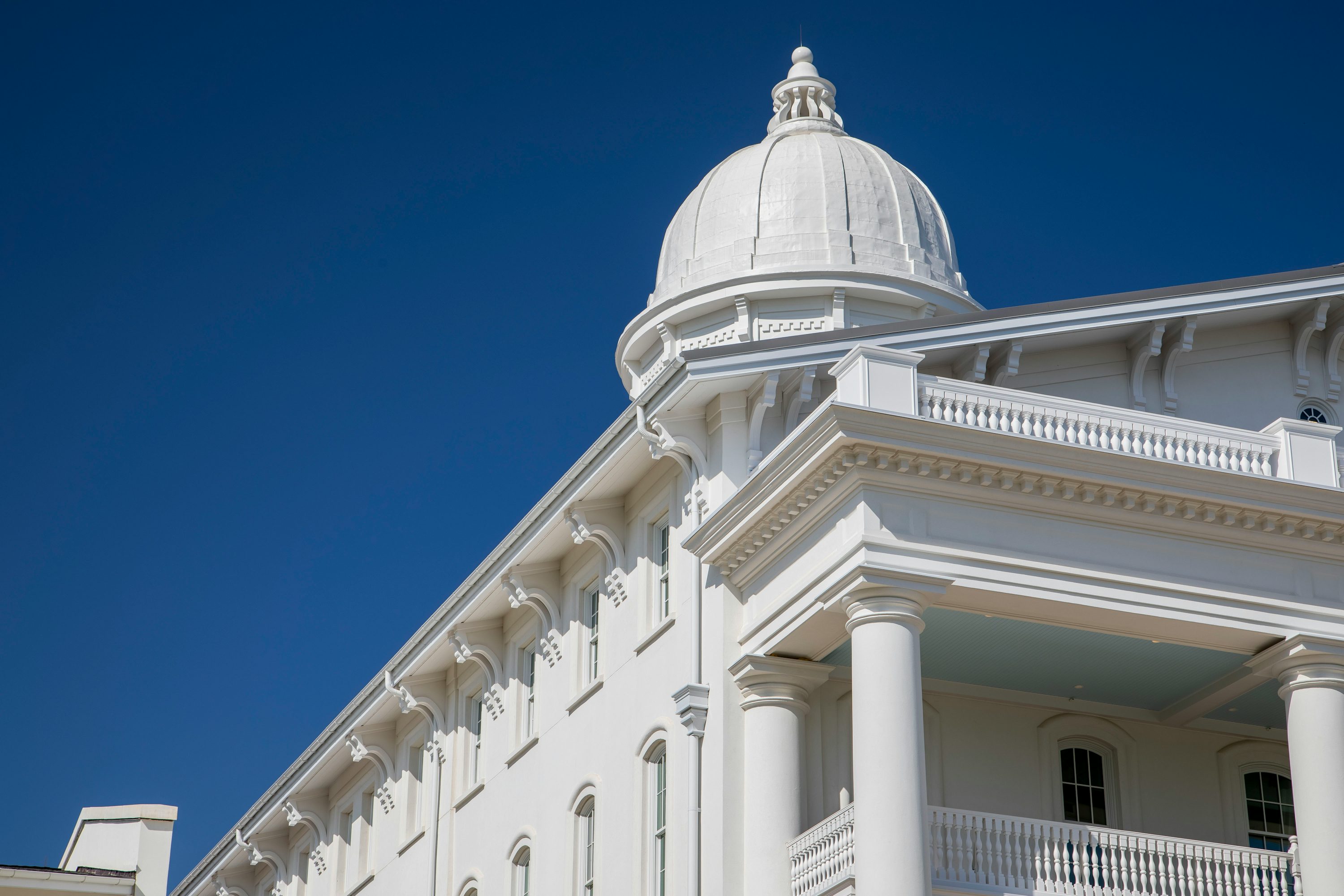 Originally placed on the National Register of Historic Places in the 1970s, the decaying building required extensive renovations, including the replication of numerous historically sensitive elements. Decoro provided the decorative cellular PVC eave brackets, prefabricated cupolas, and the replacement trim components for the center dome - helping to ensure the building's rich classical details remain intact for generations to come.